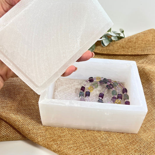 Luminous Selenite Charging Box – Handcrafted Crystal Storage for Energy Care