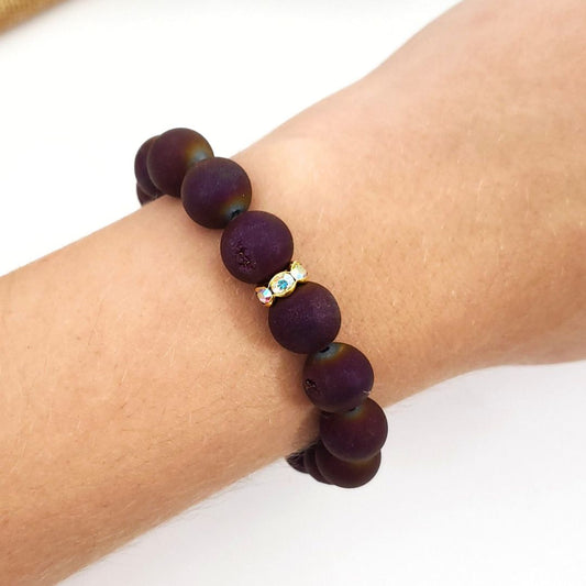 Burgundy Druzy Agate 10mm Beaded Bracelet
