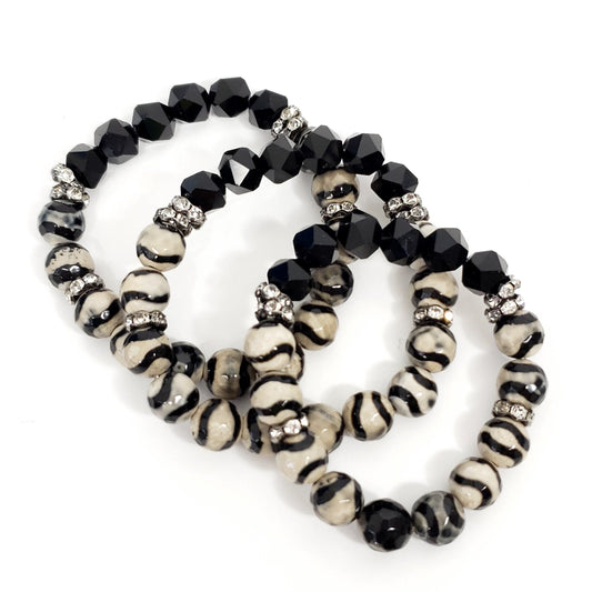 Black Onyx and DZI Agate Bracelet for Balance and Protection