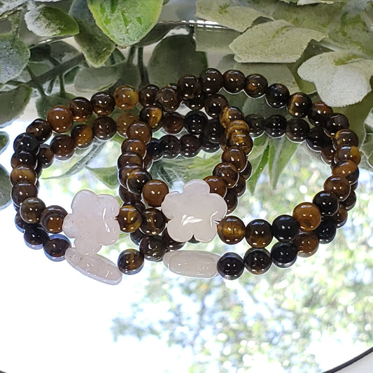 Tiger Eye Crystal Bracelet with Rose Quartz Flower