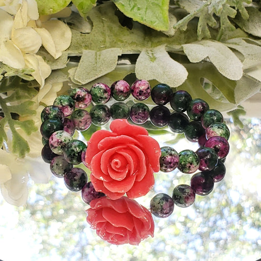 AAA Chrysoprase 7mm Bracelet with Lepidolite Flower