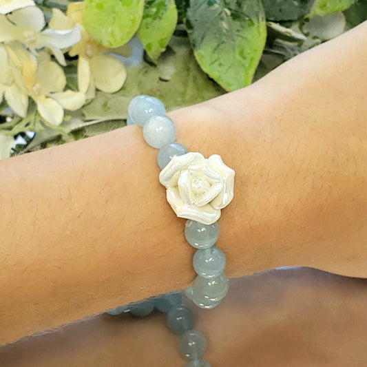 8mm Aquamarine Bracelet with Aura Stone Flower