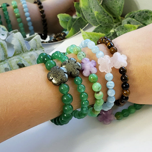 Lucky Green Aventurine Crystal Bracelet wth Pyrite Flower