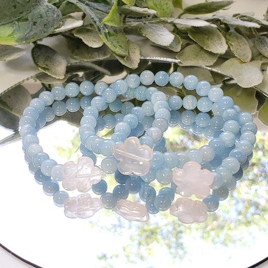 Aquamarine Crystal Bracelet with Rose Quartz Flower