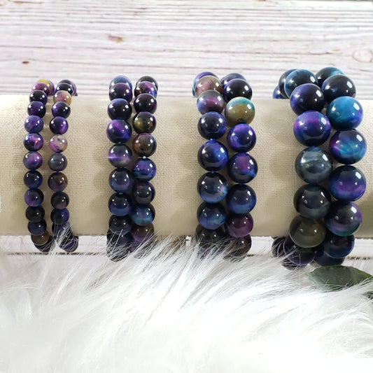 Aura Tiger Eye Bracelet, various size beads