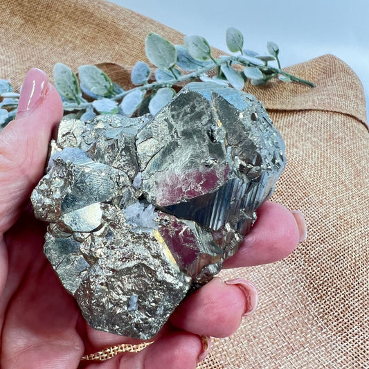 Pyrite Crystal Cluster with Calcite – Protection, Vitality and Abundance