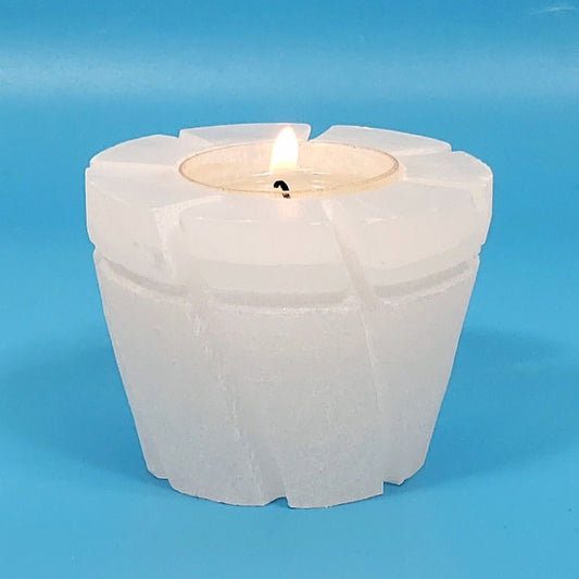 Selenite Flowerpot Crystal Candle Holder for Cleansing and Serenity