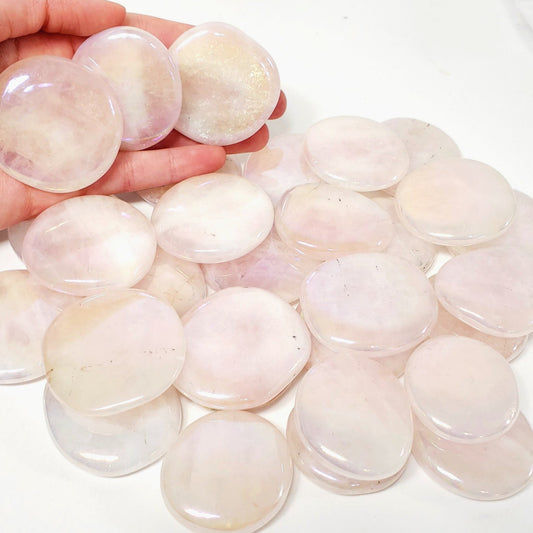 Aura Rose Quartz Smooth Pocket Stone