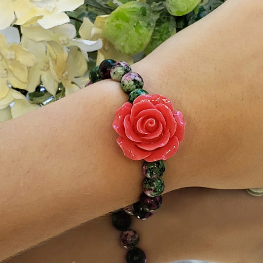 Ruby Zoisite Crystal Bracelet with large stone flower