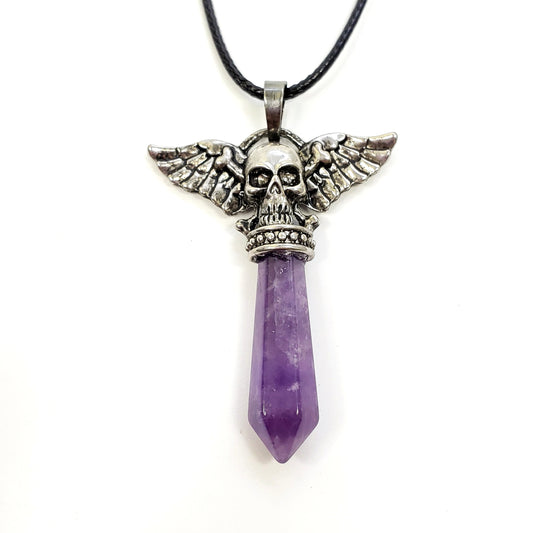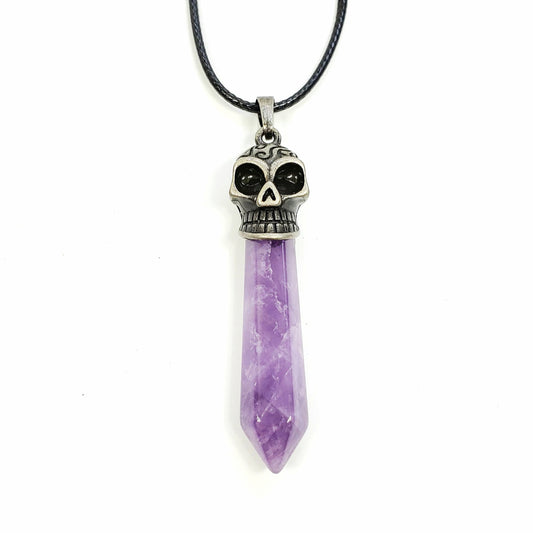 Crystal Skull Point on Wax Cord, Assorted Gemstones
