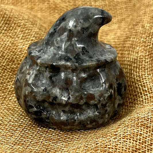 Yooperlite Carved Crystal Pumpkin with Witch Hat