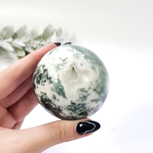 Green Moss Agate Sphere for Renewal, Balance and Steady Growth