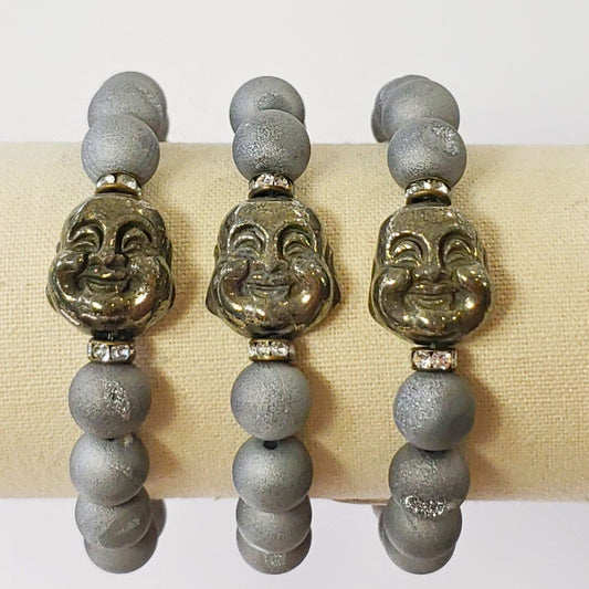Druzy Agate Beads with Pyrite Buddha Head