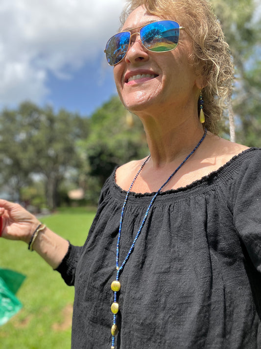 Lapis Lazuli Crystal and Brushed Gold Necklace