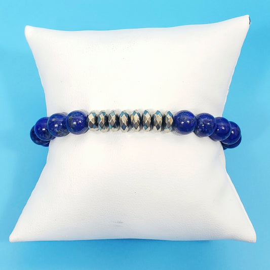 Lapis Lazuli AAAAA Beaded Bracelet with Pyrite Rondelles