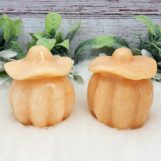 Yooperlite Carved Crystal Pumpkin with Witch Hat