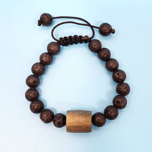 8mm Black Lava Stone Adjustable Bracelet with Pyrite Focal Bead | Manifestation and Protection