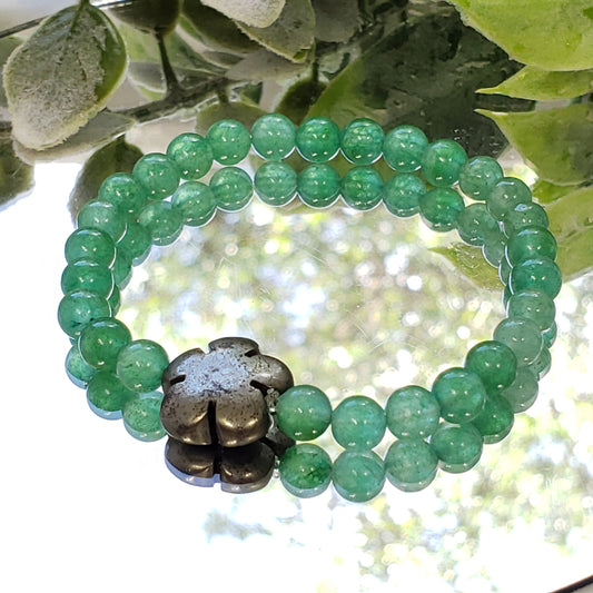 Lucky Green Aventurine Crystal Bracelet wth Pyrite Flower
