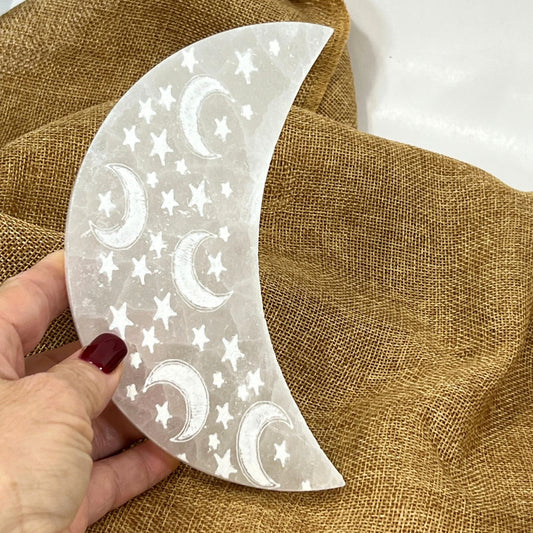 Selenite Moon & Stars Charging Plate - Clear, Cleanse and Protect your Energy