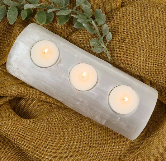 Selenite Candleholder – Illuminate, Purify, and Elevate Your Space