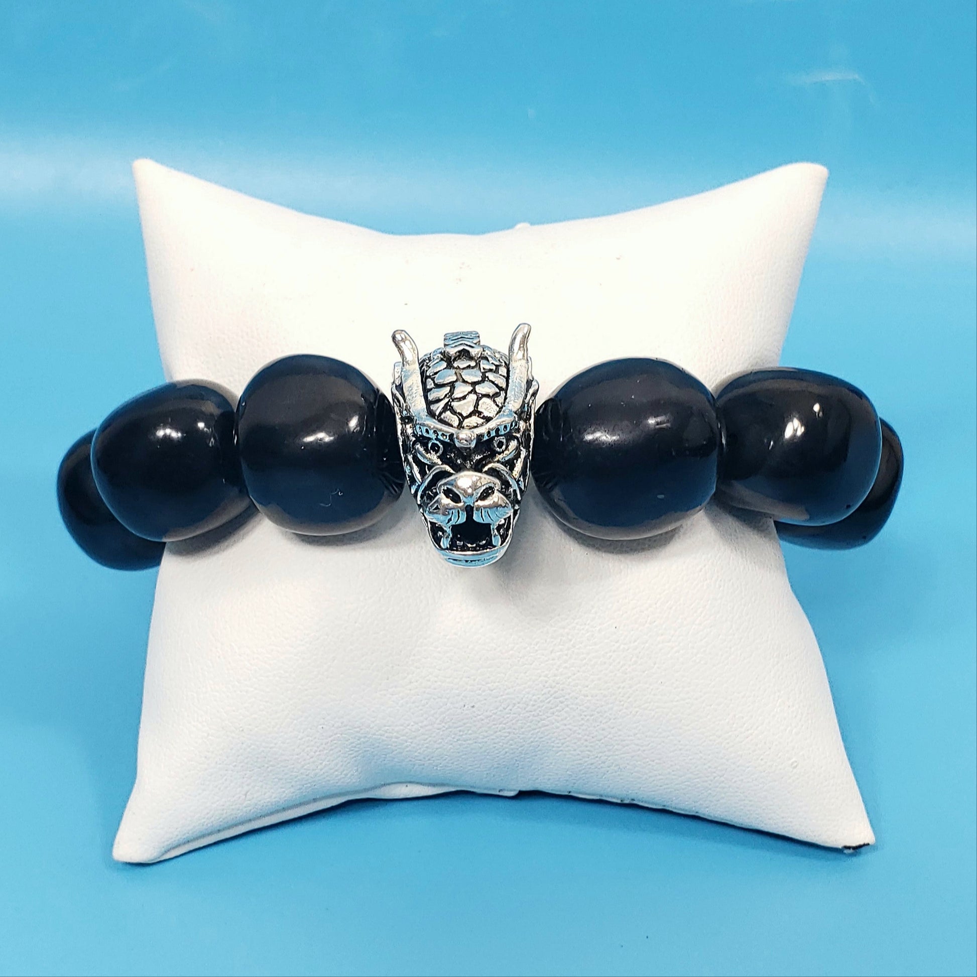 Embrace the protective and grounding energy of Shungite with our Large Bead Shungite Bracelet for men. Let the Dragon head charm symbolize strength and transformation as it accompanies you on your journey. Elevate your style and well-being with this unique and powerful bracelet.