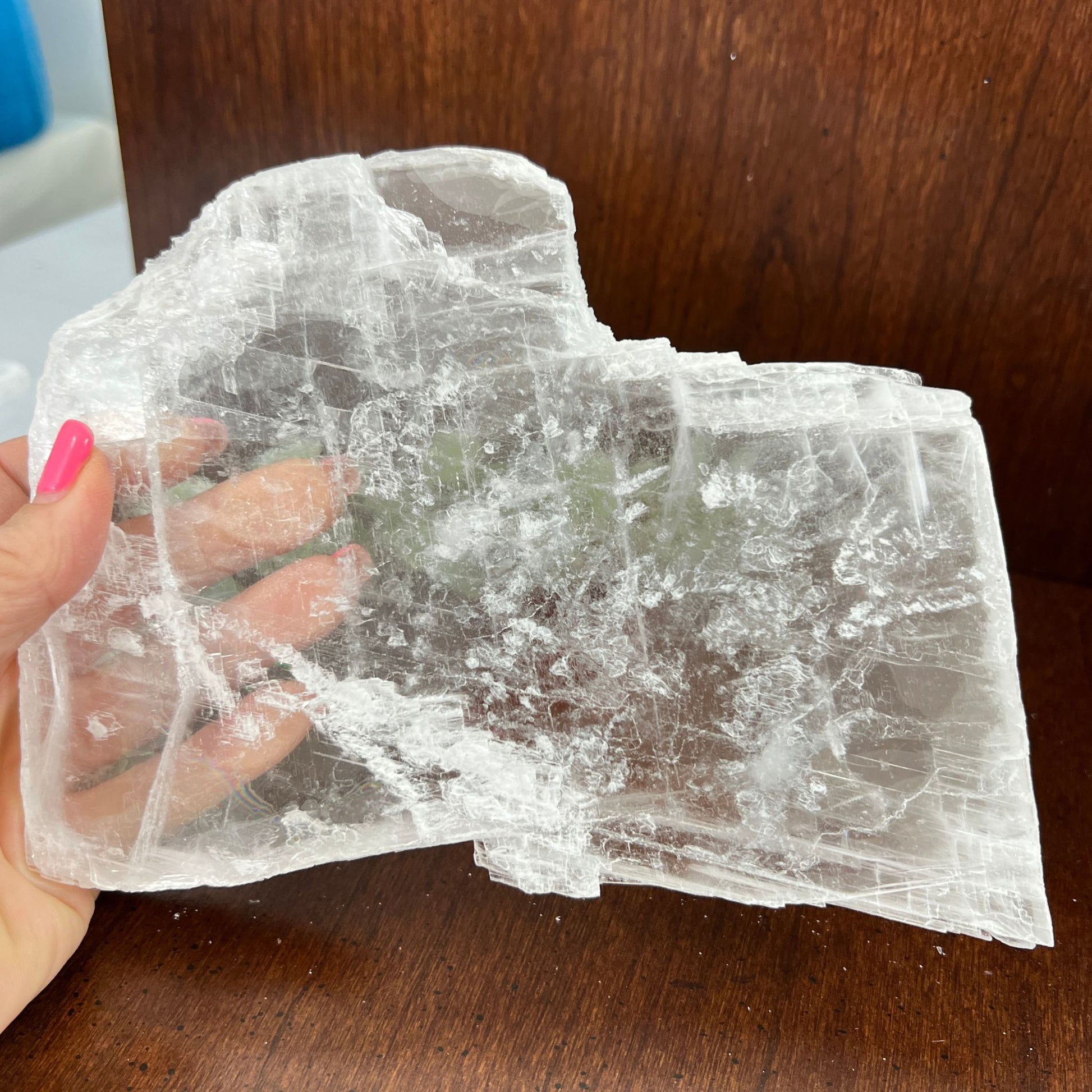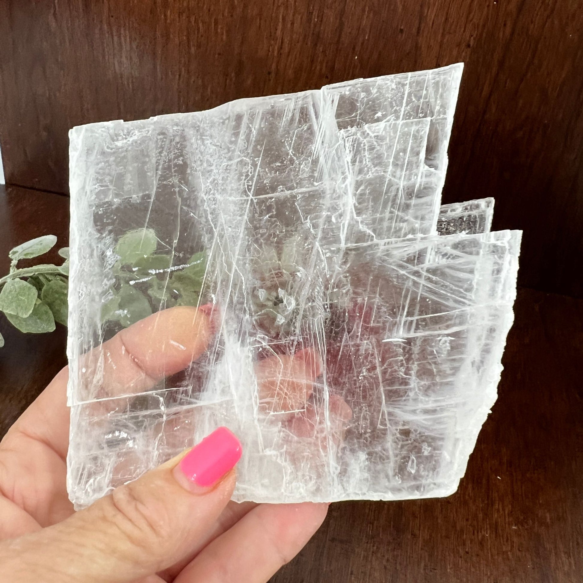 Embrace the divine energy of our Selenite Slabs, a piece of ancient magic and lunar connection in its purest form. Named after the Greek moon goddess Selene, selenite is revered for its radiant beauty and profound spiritual properties. Each slab carries celestial light energy and is perfect for those seeking clarity, peace, and divine connection in their sacred space. They are available in various sizes to best suit your needs.